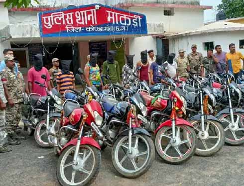 बस्तर में 8 बाइक चोर गिरफ्तार 15 मोटरसाइकिल बरामद
