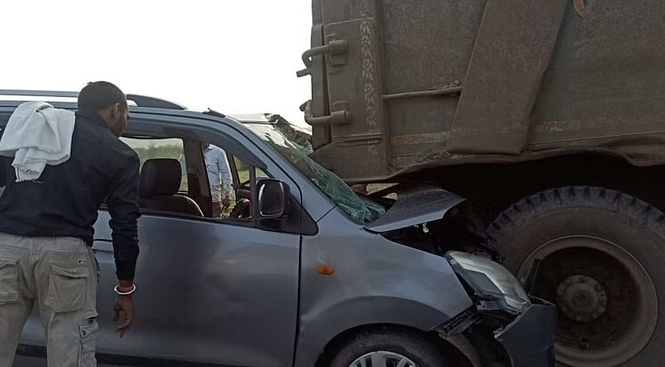 राजगढ़ में हादसा खड़े डंपर में घुसी कार एक की मौत