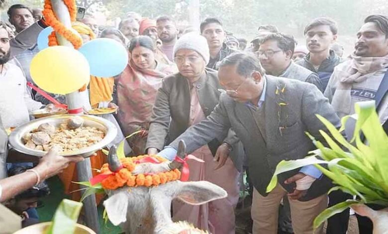 कृषि मंत्री नेताम ने गौशाला में शेड निर्माण कार्य का किया शिलान्यास और लोकार्पण