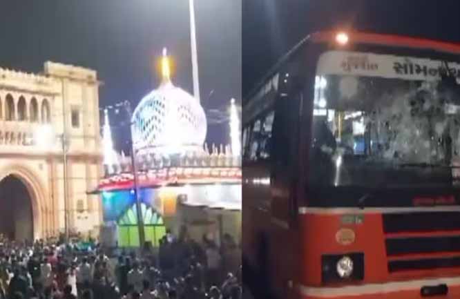 दरअसल जूनागढ़ में मजेवड़ी गेट के सामने रास्ते के बीचोबीच एक दरगाह बनी है. इसे हटाने के लिए महानगर पालिका की ओर से सीनियर टाउन प्लानर ने एक नोटिस जारी किया था. नोटिस में लिखा गया था कि ये धार्मिक स्थल अवैध तरीके से बनाया गया है. पांच दिनों के अंदर ये धार्मिक स्थल के कानूनी तौर पर सही होने के सबूत पेश किए जाए वरना ये धार्मिक स्थल तोड़ा जाएगा और इसका खर्च आपको देना होगा. धार्मिक स्थल (दरगाह) के डिमोलेशन का नोटिस लगाने महानगर पालिका के अधिकारी पहुंचे थे. नोटिस पढ़ते ही असमाजिक तत्व इकठ्ठा हो गए और नारे लगाने लगे. पुलिस ने जब उन्हें रोकने की कोशिश की तो वो हमलावर हो गए.