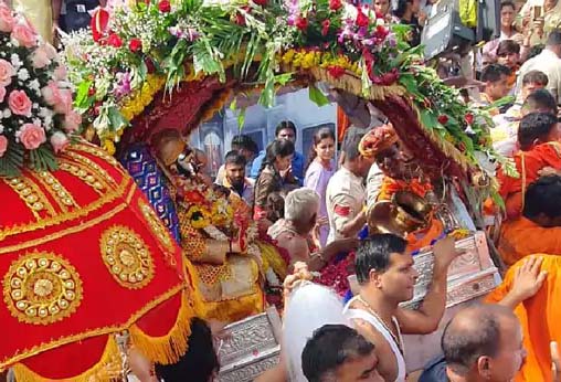 आवाहन अखाड़े के महामंडलेश्वर अतुलेशानंद, कलेक्टर कुमार पुरुषोत्तम, महापौर मुकेश टटवाल और भाजपा नेता माखन सिंह ने सवारी का पूजन किया। एसपी सचिन शर्मा, कलेक्टर कुमार पुरुषोत्तम और नगर निगम कमिश्नर रोशन सिंह तीनों घोड़े पर बैठकर सवारी के आगे चल रहे हैं।
