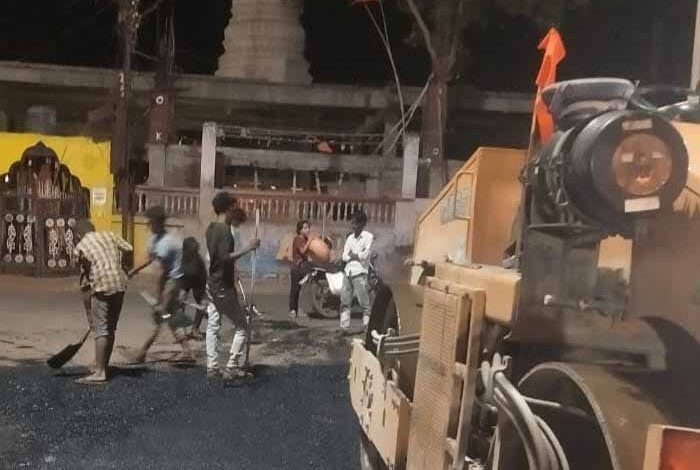 आरोन के मुख्य बाजार में चल रहा डामरीकरण के साथ सौंदर्य करण