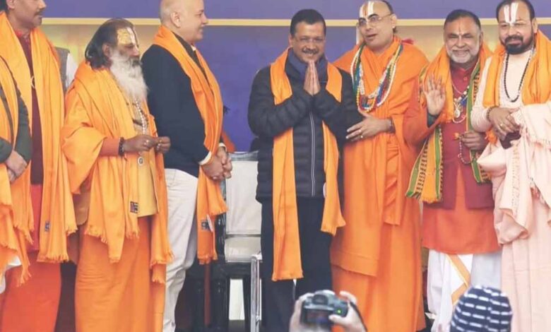 केजरीवाल ने कहा, 'भाजपा का एक मंदिर प्रकोष्ठ है वे लोग समय-समय पर वादे करते रहे लेकिन उन्होंने कुछ नहीं किया। आम आदमी पार्टी जो कहती है वह करती है। चाहे हम ऐलान करने में थोड़ी देरी कर दें, लेकिन ऐलान कर देते हैं तो रघुकुल रीत सदा चली आई, प्राण जाए पर वचन ना जाए। जो हम कह रहे है वह करेंगे। चुनाव बाद इसे लागू करेंगे। आप लोगों का इसमें गाइडेंस रहेगा सभी संतों और सनातन धर्म के लोगों का।'