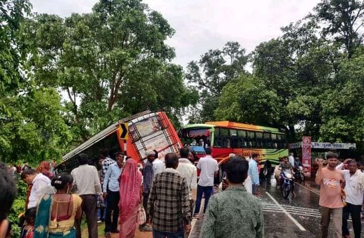 टीकमगढ़ झांसी रोड पर मडिया पृथ्वीपुर के बीच में दो बसों का बहुत बड़ा हुआ एक्सीडेंट