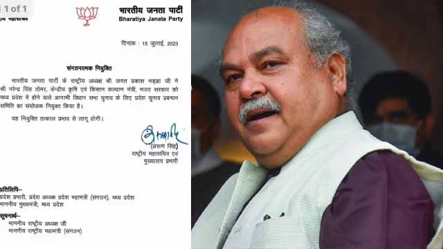 संगठन के अनुभवी नेता तोमर मध्य प्रदेश इकाई के अध्यक्ष समेत पार्टी में विभिन्न पदों पर रह चुके हैं। उन्हें विभिन्न क्षेत्रीय क्षत्रपों के साथ मैत्री संबंध रखने के लिए जाना जाता है। केंद्रीय कृषि मंत्री तोमर ग्वालियर-चंबल क्षेत्र से आते हैं, जहां भाजपा 2018 के विधानसभा चुनाव में कांग्रेस से मिली हार के बाद अपने प्रदर्शन में सुधार लाने का प्रयास कर रही है।