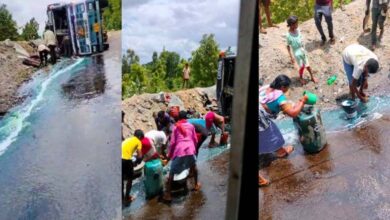 कोड़ेनार के पास पलटा डीजल से भरा टैंकर हजारों लीटर डीजल बह गया