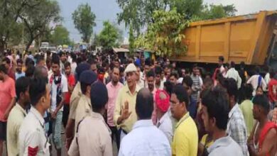 बाइक सवार को ट्रेलर ने कुचला, चक्काजाम कर भीड़ ने वाहन में की तोड़फोड़, पुलिस से झूमाझटकी