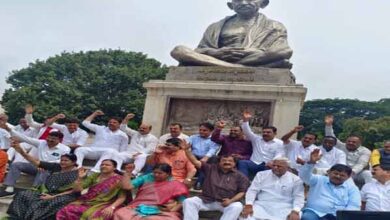 कर्नाटक में कानून व्यवस्था ध्वस्त होने के खिलाफ भाजपा का विरोध प्रदर्शन
