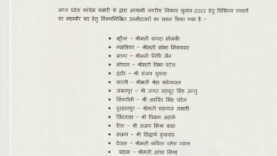 नगरी निकाय चुनाव 2022 हेतु कांग्रेस ने महापौर पद के लिए प्रत्याशियों की सूची जारी की