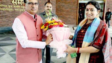 मुख्यमंत्री चौहान से केन्द्रीय मंत्री श्रीमती स्मृति ईरानी ने की भेंट