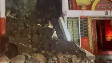 भारी बारिश से देवास माता टेकरी पर दरका पहाड़, पत्थर गिरने से हनुमान मंदिर का पिलर भी टूटा