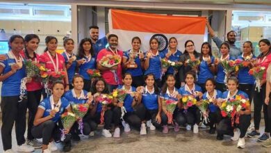 भारतीय जूनियर महिला हॉकी टीम का बेंगलुरू हवाई अड्डे पर हुआ जोरदार स्वागत