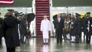 वाशिंगटन पहुंचते ही होने लगी मूसलाधार बारिश, राष्ट्रगान के सम्मान में एयरपोर्ट पर भीगते रहे PM मोदी