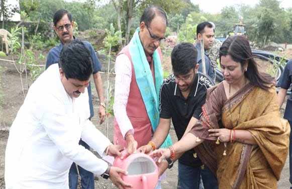 मुख्यमंत्री चौहान के साथ पौधे लगाकर मनाया जन्म-दिन