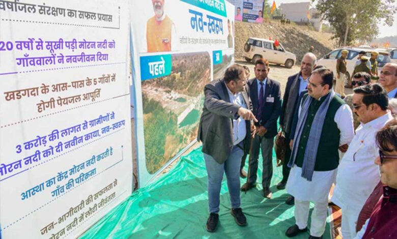 शर्मा शनिवार को डूंगरपुर के खड़गदा में नदियों के संरक्षण एवं संवर्धन हेतु आयोजित श्रीरामकथा कार्यक्रम को संबोधित कर रहे थे। उन्होंने कहा कि प्रधानमंत्री नरेन्द्र मोदी की पहल पर जन भागीदारी से जल संचय का अभियान शुरू किया गया है। प्रदेश के 40 हजार गांवों में जल संचय के कार्य किए जा रहे हैं। मुख्यमंत्री ने कहा कि खड़गदा एवं आस-पास के क्षेत्र के ग्रामीणों ने 9 महीने की कड़ी मेहनत और दृढ़संकल्प से एक किलोमीटर के दायरे में मोरन नदी को चौड़ा और गहरा कर जल की उपलब्धता बढ़ाकर अभूतपूर्व कार्य किया है।