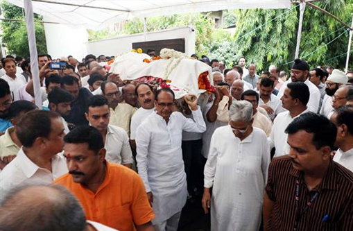मुख्यमंत्री शिवराज सिंह चौहान ने कलार समाज के राष्ट्रीय अध्यक्ष दिलीप सूर्यवंशी और उद्योगपति दीपक सूर्यवंशी की मां श्रीमती जानकी देवी सूर्यवंशी के निधन पर शोक व्यक्त किया। मुख्यमंत्री चौहान ने अरेरा कॉलोनी स्थित उनके निवास पहुँचकर अंतिम दर्शन किए तथा श्रद्धांजलि अर्पित की। मुख्यमंत्री चौहान श्रद्धेय जानकी देवी की अंतिम यात्रा और भदभदा विश्राम घाट पर उनके अंतिम संस्कार में भी शामिल हुए। मुख्यमंत्री चौहान ने परमपिता परमात्मा से दिवंगत आत्मा को अपने चरणों में स्थान देने तथा परिजनों को यह दुख सहन करने की क्षमता प्रदान करने की प्रार्थना की है।