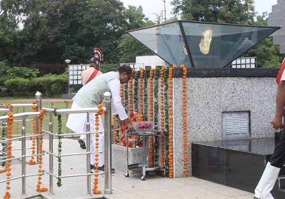 मुख्यमंत्री चौहान ने शौर्य स्मारक स्थित शौर्य स्तंभ पर किया पुष्प-चक्र अर्पित