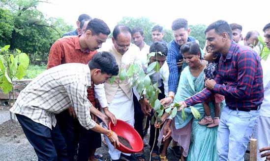 मुख्यमंत्री चौहान ने बरगद, जामुन और कदम्ब के पौधे रोपे