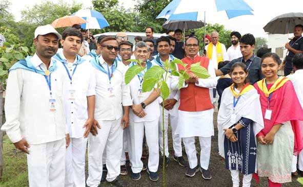 मुख्यमंत्री चौहान ने नीम, करंज और कदम्ब के पौधे रोपे