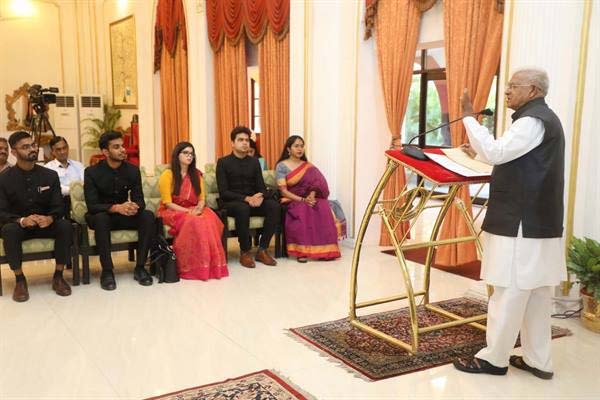 राज्यपाल की मध्यप्रदेश कैडर के प्रशिक्षु आई.ए.एस अधिकारियों के साथ चर्चा