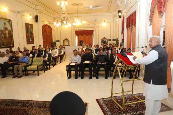 राज्यपाल पटेल राजभवन में समामेलित विशेष निधि राज्य प्रबंधन समिति की 22वीं वार्षिक बैठक के बाद समिति के पदाधिकारियों, सैनिक कल्याण के अधिकारियों और दानदाताओं को संबोधित कर रहे थे। समामेलित विशेष निधि में 1 लाख रुपए से अधिक राशि का दान देने वाले 14 व्यक्तिगत और संस्थागत दान दाताओं एवं 3 संभागों के आयुक्त और 36 जिलों के कलेक्टरों को राज्यपाल के सम्मान से सम्मानित किया गया।