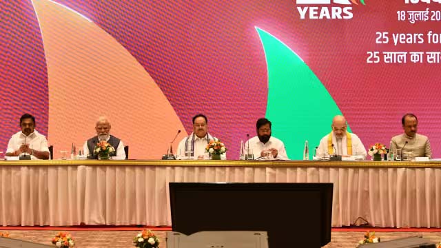 विपक्षी दलों की तरह एनडीए ने भी 2024 इलेक्शन को लेकर एक मेज पर साथ आकर मंथन किया। 2019 के चुनावों के बाद एनडीए की यह पहली बैठक थी। बीजेपी नेताओं ने अपने सहयोगियों का जोरदार स्वागत किया। बैठक में प्रधानमंत्री नरेंद्र मोदी और कई राज्यों के मुख्यमंत्री शामिल हुए। मोदी के आगमन पर चार क्षेत्रों और विभिन्न समुदायों का प्रतिनिधित्व करने वाले नेताओं ने प्रतीकात्मक रूप से उनका स्वागत किया। इसमें भाजपा प्रमुख जेपी नड्डा के अलावा जीतन राम मांझी, नेफ्यू रियो, ई पलानीस्वामी और एकनाथ शिंदे, भाजपा के सभी सहयोगी दलों के नेता थे।