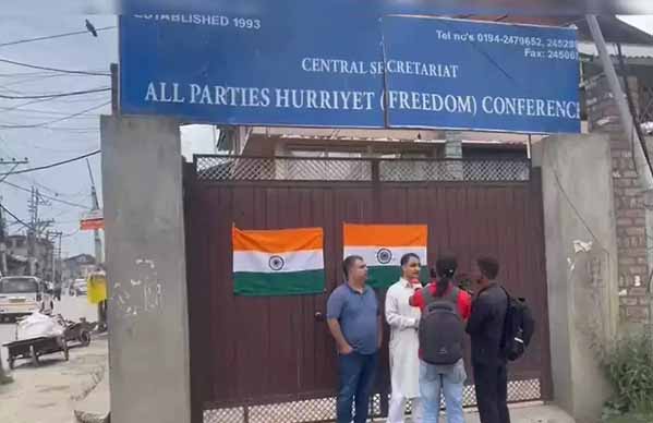 उद्यमी और राजनीतिक कार्यकर्ता संदीप मावा ने यहां प्रतिबंधित अलगाववादी संगठन जम्मू कश्मीर लिबरेशन फ्रंट (जेकेएलएफ) के कार्यालय के दरवाजे पर राष्ट्रीय ध्वज तिरंगा लगाया। अधिकारियों ने यह जानकारी दी।