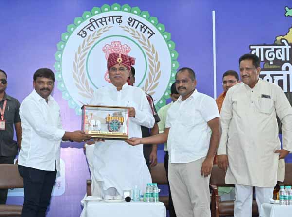 छत्तीसगढ़ का विकास मॉडल देखने आए तेलंगाना के किसानों ने छत्तीसगढ़ में संचालित किसान हितैषी नीतियों और योजनाओं को सराहा। तेलंगाना के विभिन्न जिलों से आए 500 किसानों ने राजनांदगांव और दुर्ग जिले में छत्तीसगढ़ सरकार द्वारा संचालित की जा रही किसान हितैषी योजनाओं का अवलोकन करने के बाद आज सवेरे मुख्यमंत्री श्री भूपेश बघेल से उनके निवास में प्रदेश के मुखिया श्री बघेल से अपने अनुभव साझा किए। कार्यक्रम की शुरूआत करते हुए तेलंगाना से आए किसान प्रतिनिधियों ने पारम्परिक वस्त्र गोंगड़ी पहनाकर और बैलगाड़ी का मॉडल भेंट कर मुख्यमंत्री का स्वागत एवं अभिनंदन किया।