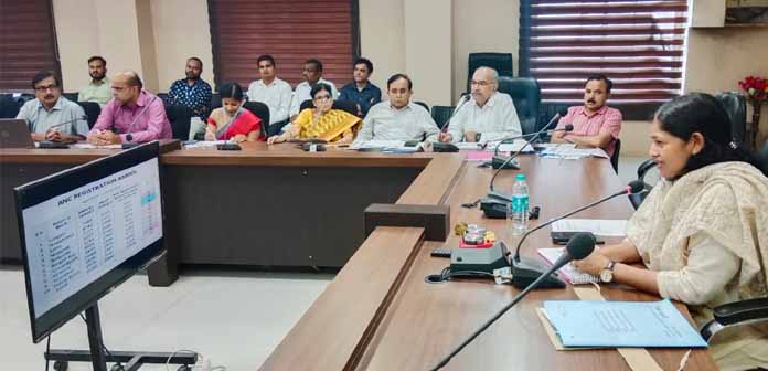 कलेक्टर श्रीमती प्रतिभा पाल की अध्यक्षता में जिला स्वास्थ्य समिति की बैठक संपन्न हुई। कलेक्ट्रेट के मोहन सभागार में आयोजित बैठक में कलेक्टर ने स्वास्थ्य अधिकारियों व चिकित्सकों को निर्देश दिये कि शिशु व मातृ स्वास्थ्य की सुरक्षा के लिये मैदानी विभागीय अमले को क्रियाशील रखें तथा सजगता से गर्र्भवती महिलाओं का पंजीयन करते हुए उनके स्वास्थ्य की सतत निगरानी रखें। उन्होंने संस्थागत प्रसव को बढ़ाने तथा नवजात शिशु के स्वास्थ्य के लिये शासन द्वारा संचालित विभागीय योजनाओं के लक्ष्यों की पूर्ति करने के निर्देश दिये।