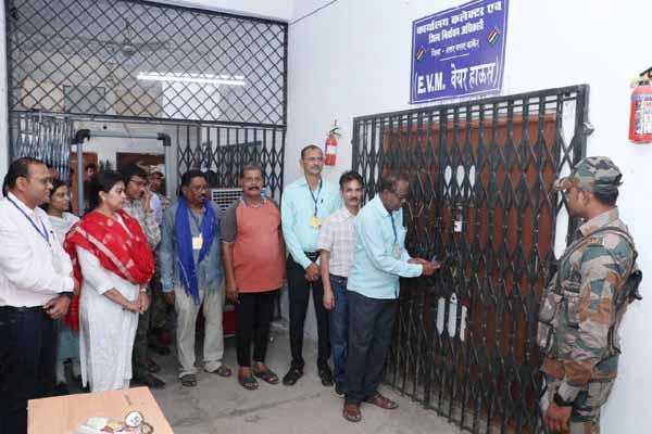 इलेक्ट्रॉनिक वोटिंग मशीनों के प्रथम स्तरीय जांच के लिए वेयर हाउस एवं व्ही.व्ही.पैट के वेयर हाउस को कलेक्टर एवं जिला निर्वाचन अधिकारी डॉ. प्रियंका शुक्ला तथा मान्यता प्राप्त राजनीतिक दलों की उपस्थिति में आज प्रात: 09 बजे खोला गया। इस अवसर पर भारतीय राष्ट्रीय कांग्रेस के प्रतिनिधि सुनील गोस्वामी, भारतीय जनता पार्टी के प्रतिनिधि राजेन्द्र गौर एवं बहुजन समाज पार्टी के प्रतिनिधि अजय करायत, उप जिला निर्वाचन अधिकारी अशोक कुमार मारबल, एसडीएम कांकेर मनीष साहू, डिप्टी कलेक्टर हर्षलता वर्मा, नायब तहसीलदार कांकेर उमाकांत जायसवाल सहित जिला निर्वाचन कार्यालय के अधिकारी-कर्मचारी मौजूद थे।