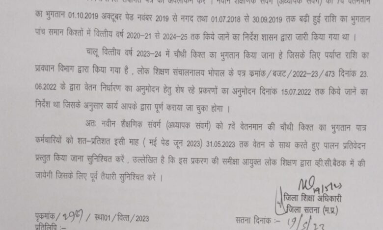 मध्यप्रदेश शासन स्कूल शिक्षा विभाग लोक शिक्षण संचनालय द्वारा 29 मई 2023 को आदेश जारी किया गया कि बजट प्राप्त समस्त जिलों के समस्त विकासखंड के अतिथि शिक्षकों का भुगतान अतिशीघ्र किया जाए। लेकिन सतना जिले के अधिकारियों की सुस्ती की वजह से अतिथि शिक्षकों के खाते में राशि नहीं गई।आखिर इसका जिम्मेदार कौन है?