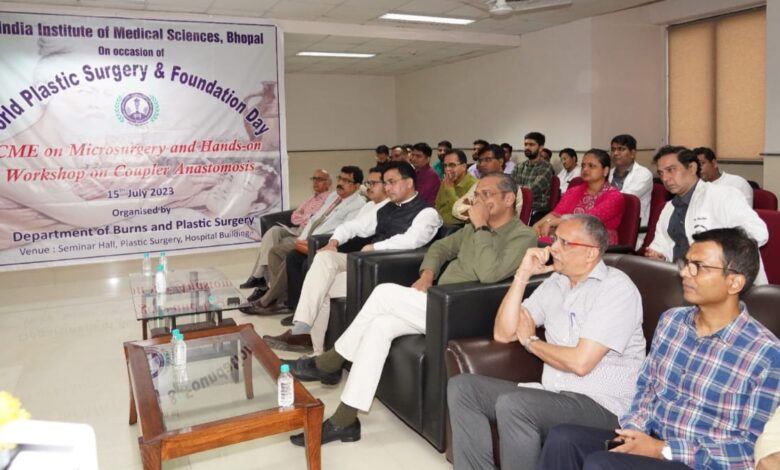 बर्न्स एंड प्लास्टिक सर्जरी विभाग, एम्स भोपाल ने विश्व प्लास्टिक सर्जरी दिवस और विभाग के स्थापना दिवस के अवसर पर 15 जुलाई 2023 को माइक्रोसर्जरी पर एक सीएमई और कपलर एनास्टोमोसिस पर हैंड्स-ऑन कार्यशाला का आयोजन किया । एम्स भोपाल के अध्यक्ष डॉ. सुनील मलिक ने अपनी उपस्थिति से कार्यक्रम की शोभा बढ़ाई और विभाग को अब तक हुई उत्कृष्ट प्रगति के लिए बधाई दी । एम्स भोपाल के कार्यपालक निदेशक प्रोफेसर (डॉ.) अजय सिंह इस कार्यक्रम में शामिल हुए और विभाग के संबंध में अपनी अंतर्दृष्टि और मार्गदर्शन प्रदान किया । उन्होंने रोगी देखभाल, शिक्षण/प्रशिक्षण और अनुसंधान की गुणवत्ता में सुधार के लिए स्किन बैंक की स्थापना और फ़ेलोशिप कार्यक्रम शुरू करने की पेशकश की ।