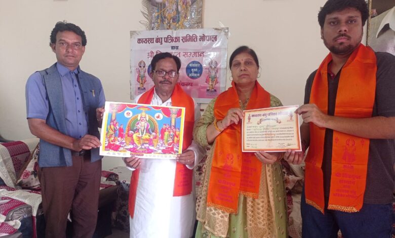 यह सम्मान कायस्थ बंधु समिति ने श्रीवास्तव परिवार को दहेज एवम मांसाहार मुक्त अभियान के तहत दिया गया है।समिति के अध्यक्ष गिरीश श्रीवास्तव ने परिवार के सभी सदस्यों को पीले गमछे पहनाकर सम्मान मे प्रशस्ति पत्र के साथ श्री चित्रगुप्त भगवान की तस्वीर भेट की। श्रीवास्तव परिवार ने बताया कि मै अपने बेटे अमित श्रीवास्तव रेल्वे मे सेवारत का विवाह बिन दहेज माँग रहित एवम मांसाहार मुक्त अभियान के तहत ही करेगे। अभी तक समिति भोपाल मे दो सौ से अधिक परिवारो को चित्रगुप्त सम्मान दे चुकी है।समाज से दहेज एवम मांसाहार की प्रवर्ति खत्म हो इसी उददेश्य को लेकर कायस्थ बंधु समिति लगातर कार्यक्रम आयोजित कर रही है।