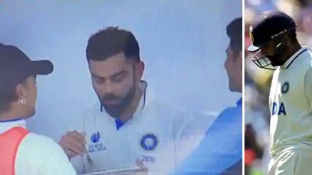 आईसीसी वर्ल्ड टेस्ट चैंपियनशिप 2021-23 के फाइनल मैच में पहले दो दिन ऑस्ट्रेलिया का दबदबा रहा है। मैच के दूसरे दिन भारतीय क्रिकेट टीम का टॉप ऑर्डर चरमरा गया और ऑस्ट्रेलिया की पहली पारी के 469 रनों के जवाब में भारतीय टीम 151 रनों तक पांच विकेट गंवा चुकी है। हाल तो ऐसा था कि 71 रनों तक भारत के टॉप ऑर्डर के चार सूरमा पवेलियन लौट चुके थे। कप्तान रोहित शर्मा, शुभमन गिल, चेतेश्वर पुजारा और विराट कोहली ने जिस तरह से विकेट गंवाए, उससे फैन्स में पहले से ही काफी गुस्सा था और फिर ड्रेसिंग रूम में विराट को खाना खाते हुए देखना फैन्स को बिल्कुल नहीं पच रहा है। दरअसल विराट जब आउट हो गए थे, उसके बाद मैच के प्रसारण के दौरान एक क्लिप दिखाई गई, जिसमें वह ईशान किशन और शुभमन गिल के साथ खड़े हैं। इस दौरान विराट कुछ खाते हुए दिखे हैं। फिर क्या था, इसके बाद से फैन्स ने विराट को ट्रोल करना शुरू कर दिया।