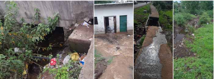 विभाग द्वारा जो गलत तरीके से पुलिया और नाली बनाई गई है इसकी जांच जिले एवं दूसरे विभाग से जांच कराकर कार्रवाई करने और मेरे प्लाट और सार्वजनिक नदी में मिल रही गंदगी को बंद कराएं अभी पंद्रह तारीख की हुई जोरदार बारिश से रोड किनारे रह रहे विश्राम चक्रवर्ती और बेड़ी चक्रवर्ती के मकान में सड़क का पूरा पानी घुसते हुए गया बेड़ी चक्रवर्ती का कहना है कि अगर पानी घुसने से मेरा घर का नुकसान होगा तो मेरे रहने को कहीं भी जगह नहीं है करीब 600 मीटर तक पूरी सड़क में 3 फीट पानी भर गया था जिससे वाहन एवं आमजन बहुत परेशान होते रहे यहां लोगों का कहना है शीघ्र ही हमारी समस्या का निदान करें।
