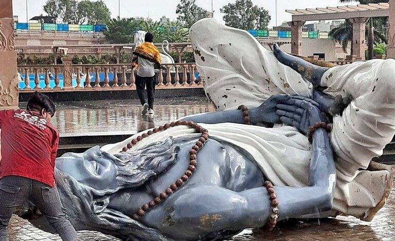 उज्जैन के महाकाल लोक कॉरिडोर में तूफान की वजह से छह सप्तऋषियों की मूर्तियां गिरने के मामले पर आज कांग्रेस प्रदेश के 50 जिलों में एक साथ सरकार के खिलाफ गरजी। भोपाल और उज्जैन को छोड़कर हर जिला मुख्यालय पर कांग्रेस ने पत्रकार वार्ता कर इस मामले में प्रदेश सरकार को जमकर आड़े हाथों लिया।