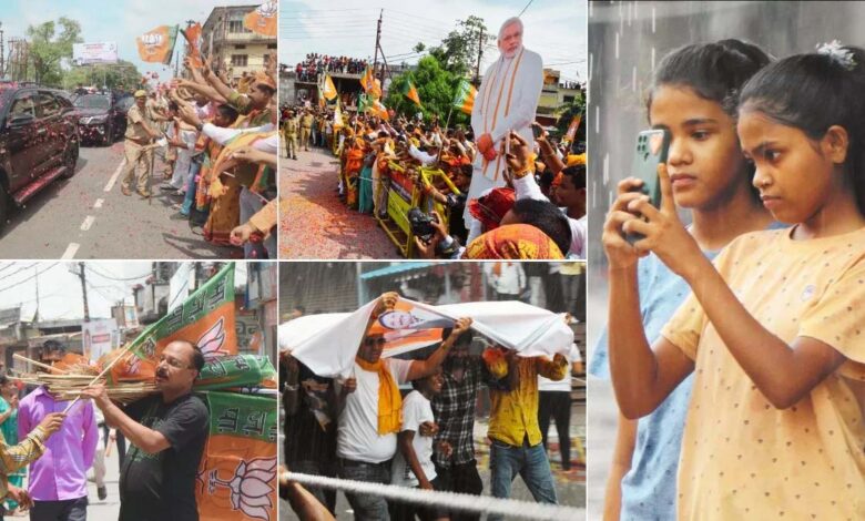 योगी के शहर में हर-हर मोदी, घर-घर मोदी; तस्वीरों में देखें- घनघोर बारिश भी नहीं तोड़ सकी शहरवासियों का हौसला