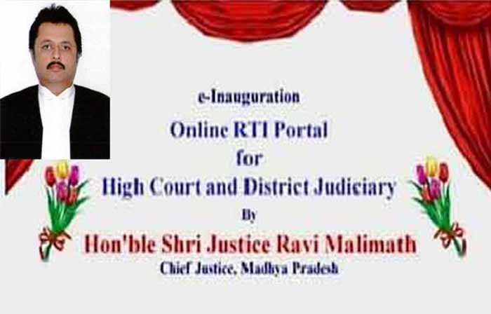 मध्यप्रदेश उच्च न्यायालय के मुख्य न्यायाधीश न्यायमूर्ति रवि मलिमठ ने आम जनता के लिये उच्च न्यायालय और जिला न्यायपालिका के लिये ऑनलाइन आरटीआई पोर्टल का ई-उद्घाटन उच्च न्यायालय की मुख्य खण्डपीठ जबलपुर में किया। इस अवसर पर मध्यप्रदेश उच्च न्यायालय के सभी न्यायमूर्ति एवं राज्य के सभी जिला न्यायालयों के प्रधान जिला एवं सत्र न्यायाधीश उपस्थित थे।