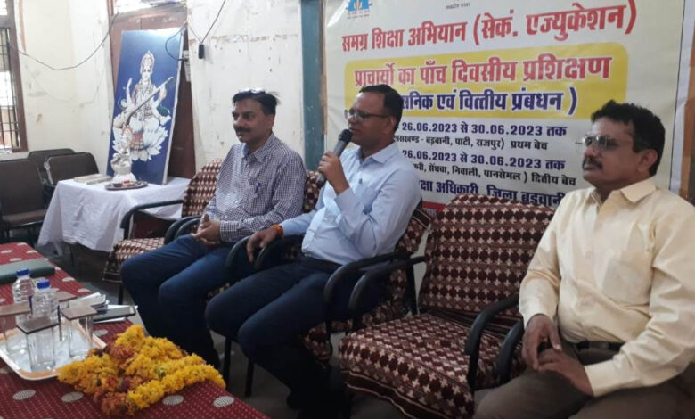इससे पूर्व जिला शिक्षा अधिकारी महेश कुमार निहाले द्वारा 5 दिवसीय प्राचार्य प्रशिक्षण की रूपरेखा से अवगत कराकर जानकारी प्रदान की गई। सहायक आयुक्त नीलेश रघुवंशी द्वारा बिंदुवार शैक्षणिक गुणवत्ता सुधार हेतु प्राचार्य को टिप्स दिये गये। इस दौरान कलेक्टर ने पर्यावरण मंत्रालय भारत सरकार, राष्ट्रीय हरित कोर मिशन, पर्यावरण नियोजन एवं संस्थान भोपाल (एफ्को) द्वारा इको क्लब हेतु प्राप्त कीट, राष्ट्रीय हिंदी ग्रंथ अकादमी द्वारा प्राप्त पुस्तकों के सेट पुस्तकालय हेतु व आगामी 27 जुलाई को होने वाले पर्यटन क्विज के पोस्टर का वितरण प्राचार्यो को किया गया।