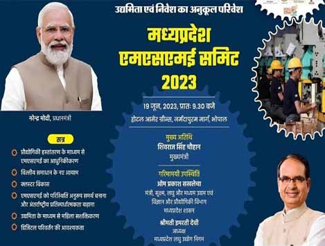 मुख्यमंत्री शिवराज सिंह चौहान सोमवार 19 जून को "आर्थिक विकास के शुभ संयोग- मध्यप्रदेश के सूक्ष्म, लघु और मध्यम उद्योग" पर राज्य-स्तरीय समिट का उद्घाटन करेंगे। नर्मदापुरम रोड स्थित आमेर ग्रीन्स में होने वाली इस समिट में एमएसएमई और विज्ञान तथा प्रौद्योगिकी मंत्री ओमप्रकाश सखलेचा तथा लघु उद्योग निगम की अध्यक्ष श्रीमती इमारती देवी की विशेष उपस्थिति रहेगी। समिट में अनेक उद्योग परिसंघ के पदाधिकारी,बड़े औद्योगिक घराने,नव उद्यमी,भारत सरकार और राज्य के वरिष्ठ अधिकारी सम्मिलित होंगे। इस दौरान सफल उद्यमियों को एमएसएमई अवार्ड वितरण तथा देश की प्रतिष्ठित कंपनी और संस्थानों के बीच एम ओ यू भी होंगे।