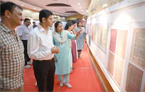 अंतर्राष्ट्रीय अभिलेखागार सप्ताह में प्रदर्शित ऐतिहासिक दस्तावेजों को निहार रहे लोग
