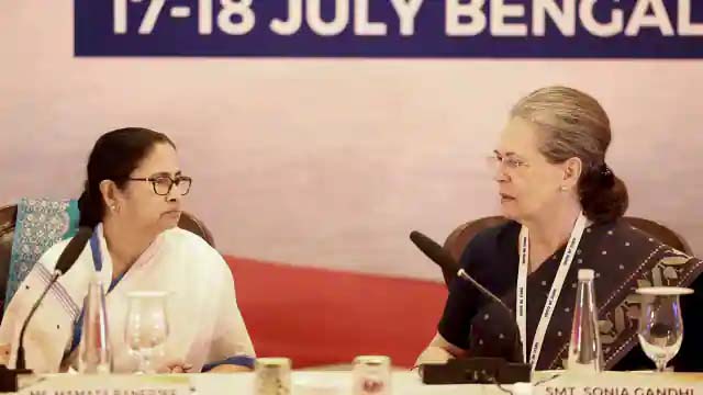 साथ बैठे सोनिया और ममता बनर्जी