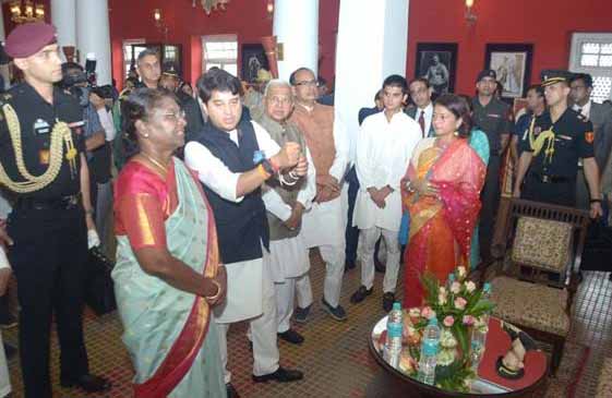 म्यूजियम आगमन पर राष्ट्रपति श्रीमती मुर्मु का लोक एवं शास्त्रीय नर्तकों ने परंपरागत तरीके से स्वागत किया। राष्ट्रपति श्रीमती मुर्मु ने महाराजा जीवाजीराव सिंधिया की प्रतिमा के समक्ष दीप प्रज्ज्वलन कर पुष्प अर्पित किए। राज्यपाल पटेल और मुख्यमंत्री चौहान ने भी पुष्पांजलि दी।