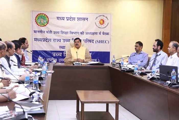 मंत्री डॉ. यादव ने कहा कि मध्यप्रदेश का सकल नामांकन अनुपात 27.1 प्रतिशत है। आगामी वर्षों के लिए कार्य-योजना तैयार की गई है। प्रधानमंत्री उच्चतर शिक्षा अभियान वर्ष 2023-26 के लिए जारी दिशा-निर्देश अनुसार जिलों के चयन का कार्य प्रारम्भ है। चयन का आधार कम जीईआर, उग्रवाद प्रभावित जिले, सीमा क्षेत्र के जिले तथा अनुसूचित जातियों-जनजातियों, महिलाओं, अन्य पिछड़ा वर्गों एवं ट्रांसजेंडर की अनुपातिक जनसंख्या होगी। इसके अतिरिक्त राष्ट्रीय शिक्षा नीति के परिप्रेक्ष्य में स्नातक चतुर्थ वर्ष एवं स्नातकोत्तर स्तर के पाठयक्रम का निर्माण, स्नातक स्तर पर क्षेत्र की आवश्यकता अनुसार नवीन व्यावसायिक विषय और रोजगारोन्मुखी पाठयक्रम का समावेश, प्रत्येक जिले में कौशल संवर्धन प्रयोगशालाओं का निर्माण, जिलों में वर्चुअल माध्यम से अध्ययन के लिए डिजिटल स्टूडियो तथा स्मार्ट क्लास की स्थापना की जायेगी।
