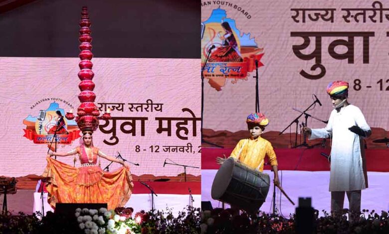राजस्थान-सवाई मानसिंह स्टेडियम में हुआ युवा महोत्सव, ‘मेगा कल्चरल इवनिंग’ में नव्या भटनागर ने 22 मटके रखकर किया भवाई नृत्य