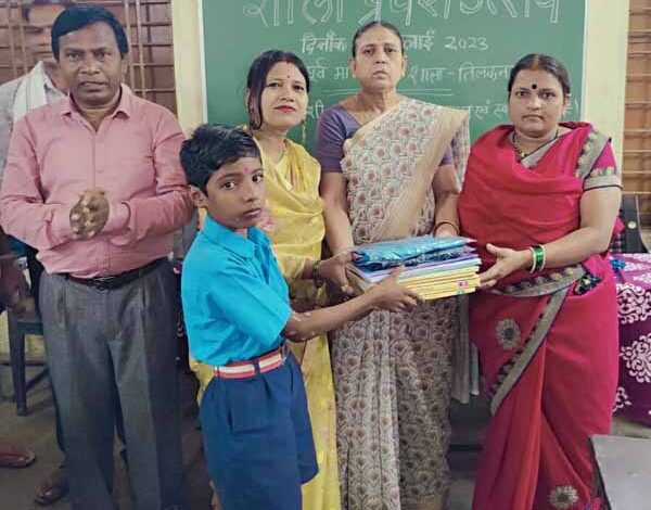 शासकीय पूर्व माध्यमिक शाला तिलकनगर गुढ़ियारी में शनिवार को शाला प्रवेशोत्सव का आयोजन किया गया। जिसमें नव प्रवेशी छात्र छात्राओं को तिलक लगाकर एवं मिठाई खिलाकर पुस्तक व गणवेश प्रदान किया गया। इस अवसर पर वार्ड पार्षद श्रीमती कामिनी देवांगन,शाला अध्यक्ष देवराज साहू, प्रधानपाठक लच्छुराम निषाद, संकुल समन्वयक कमल साहू, उपाध्यक्ष हेमलता साहू, वरिष्ठ शिक्षक सरोज मिश्रा, मनमत भारती, अनिता साहू, निर्मला चावड़ा, चन्द्रप्रिया गोस्वामी, रेहाना सिद्दीकी, नीता ठाकुर एवं विद्यार्थीगण उपस्थित थे।