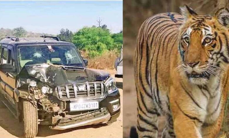 दो बाघों को देख डरा एसयूवी ड्राइवर, पेड़ से टकराई गई गाड़ी