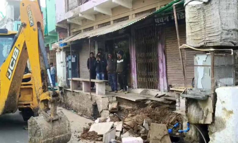 श्योपुर जिले के विजयपुर नगर में टू लाइन सड़क निर्माण के बीच आ रहे अतिक्रमण पर प्रशासन ने जेसीबी चलवा दी