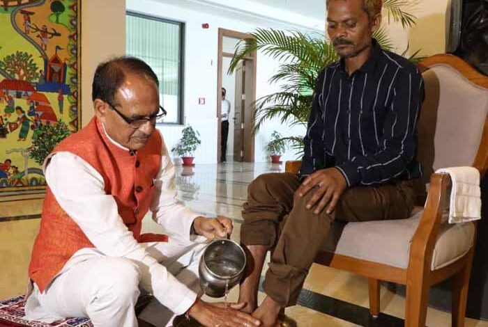 तब इसपर पीड़ित ने कहा कि अब क्या बताऊं, जो हो गया वो हो गया।' इस मामले में गुरुवार को मध्य प्रदेश के मुख्यमंत्री शिवराज सिंह चौहान ने पेशाब घटना के पीड़ित युवक के पैर धोए और उससे माफी मांगी। चौहान ने कहा कि वह इस घटना से दुखी हैं। उन्होंने भोपाल में मुख्यमंत्री आवास पर फर्श पर बैठकर आदिवासी युवक दशमत रावत के पैर धोए। उन्होंने युवक को 'सुदामा' बुलाया और कहा,'अब तुम मेरे मित्र हो।' एक अधिकारी ने बताया कि इस दौरान चौहान ने उसके साथ विभिन्न मुद्दों पर भी चर्चा की, खासकर यह जानने के लिए कि विभिन्न कल्याणकारी योजनाओं का लाभ उस तक पहुंच रहा है या नहीं।