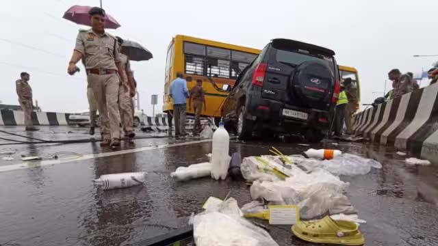 मेरठ से खाटू श्याम जा रहा था परिवार, गाजियाबाद में स्कूल बस ने कार में मार दी टक्कर; 6 की मौत